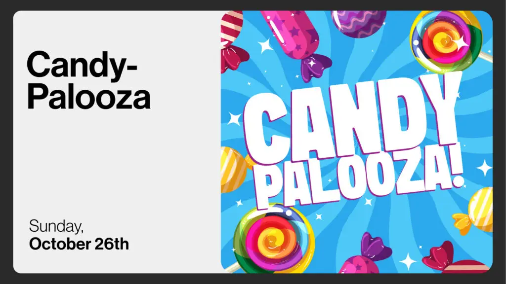 Candypalooza features tons of candy, fun games, and rides on the Lollipop Express, but most of all, it is a safe place for kids to learn about Jesus.